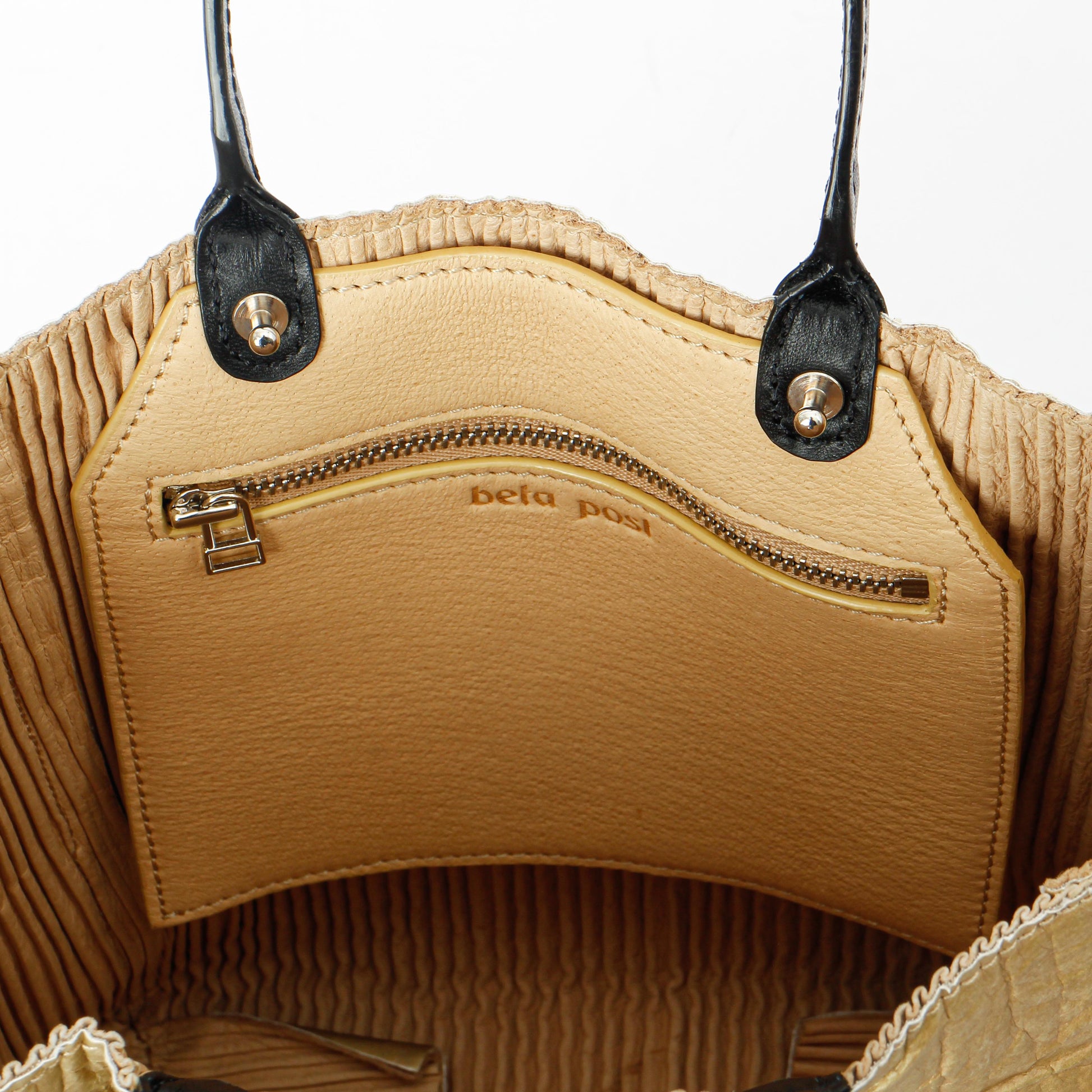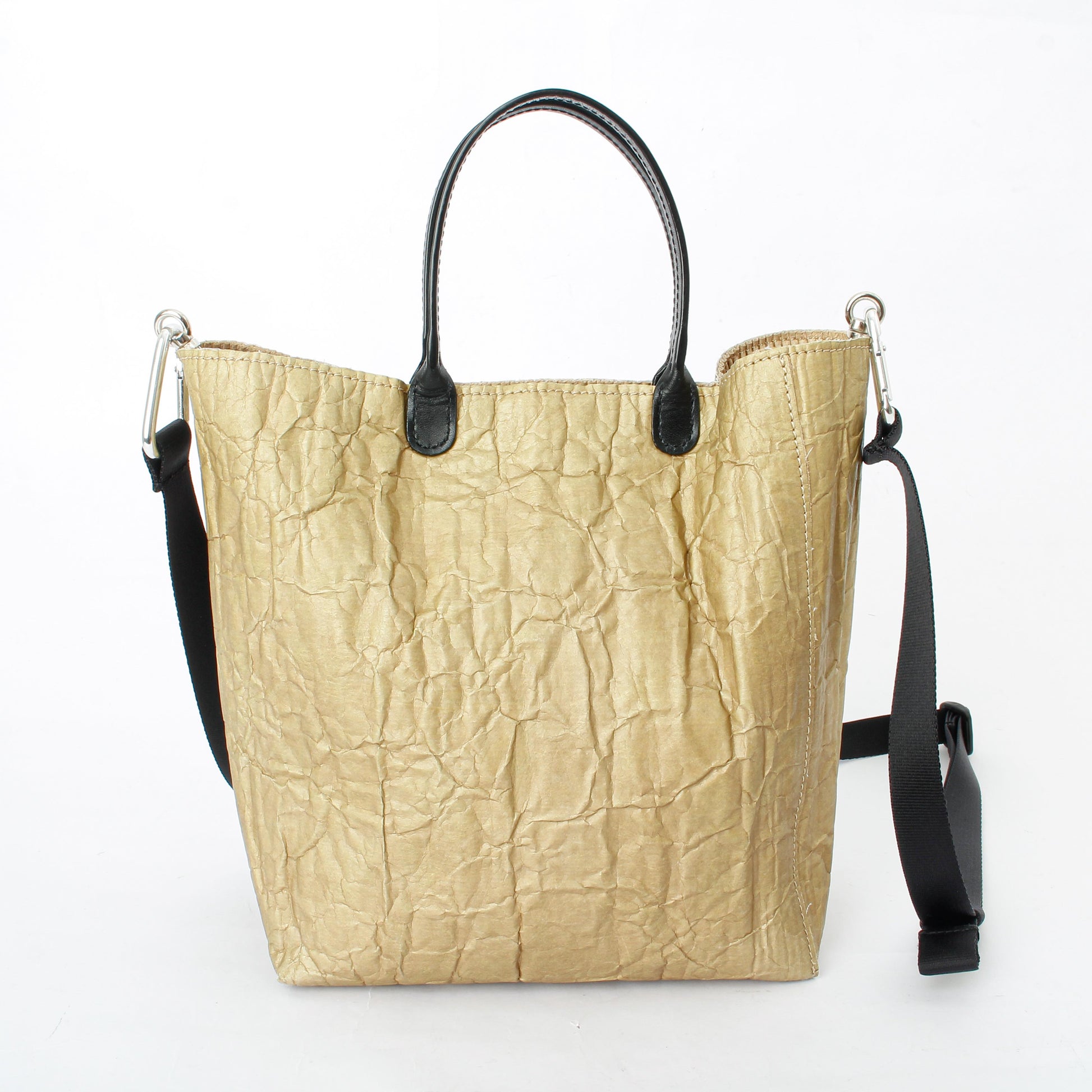 本体は豚革にプリーツ加工を施し、タイベックをボンディングしたオリジナルマテリアルを使用しています。