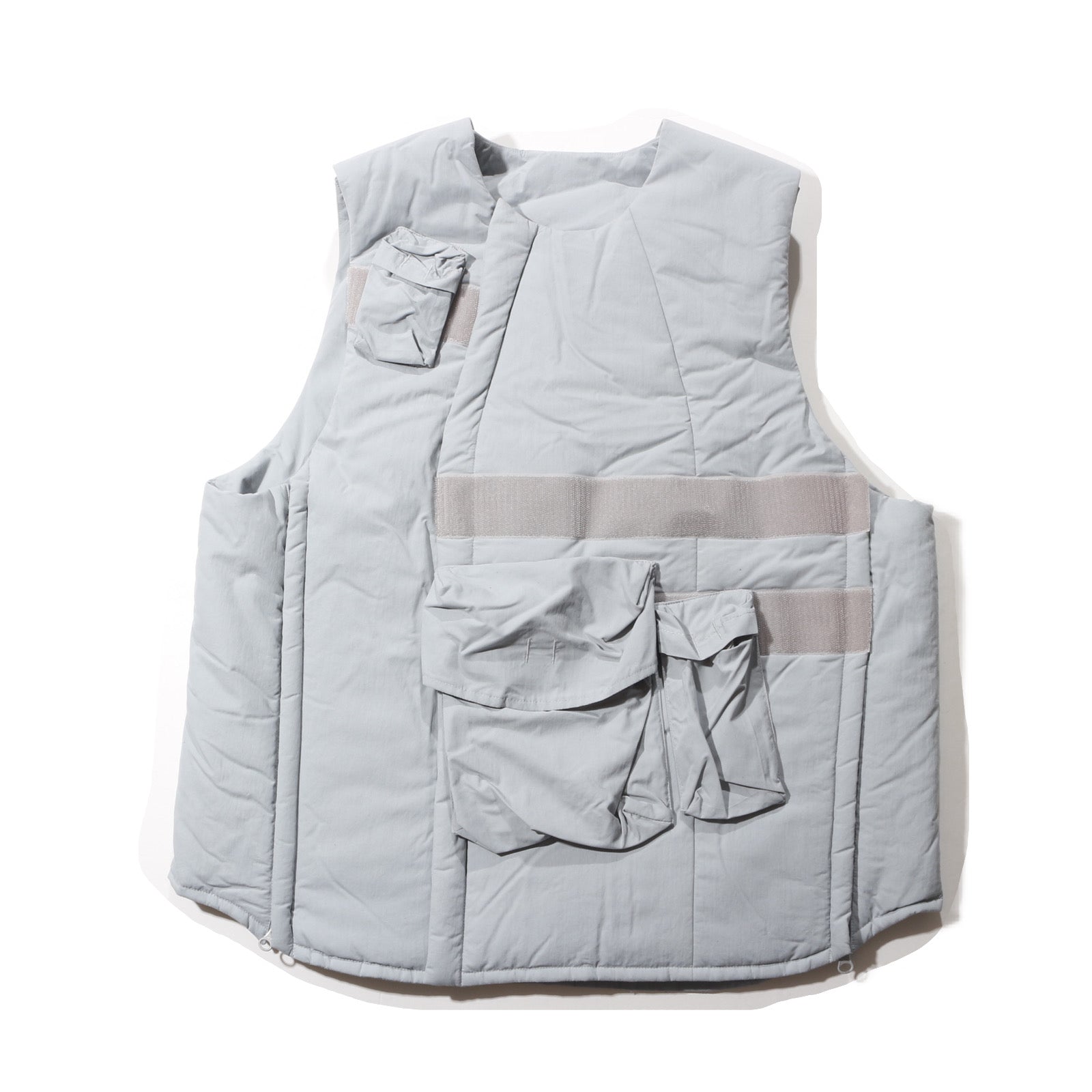 -撥水性のある起毛ナイロン生地を使用しました。中綿入りで保温性のあるアイテムです。ポケットの取り外しや、パーツの脱着が可能です。