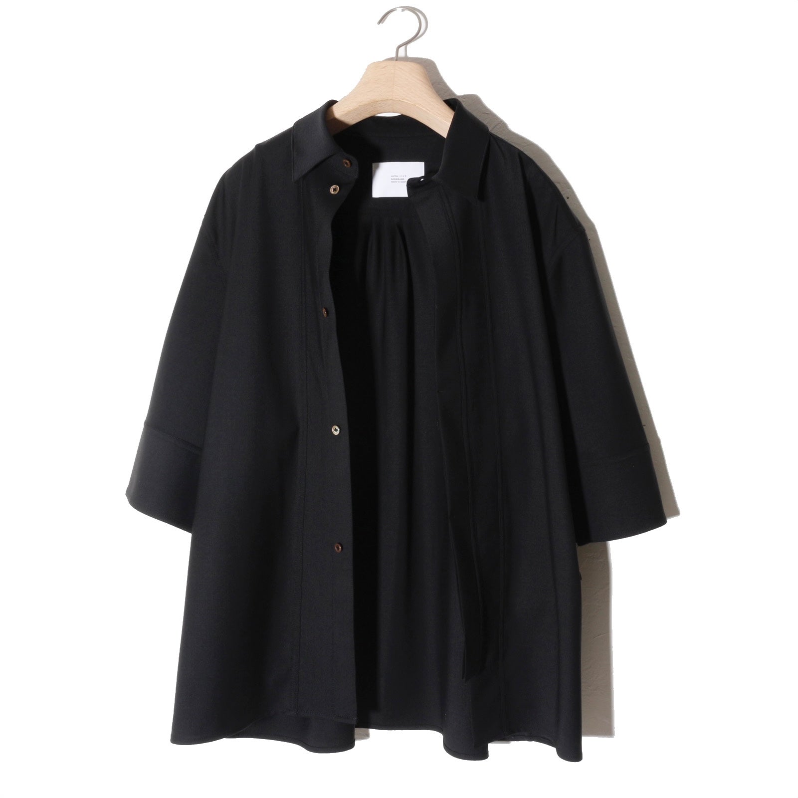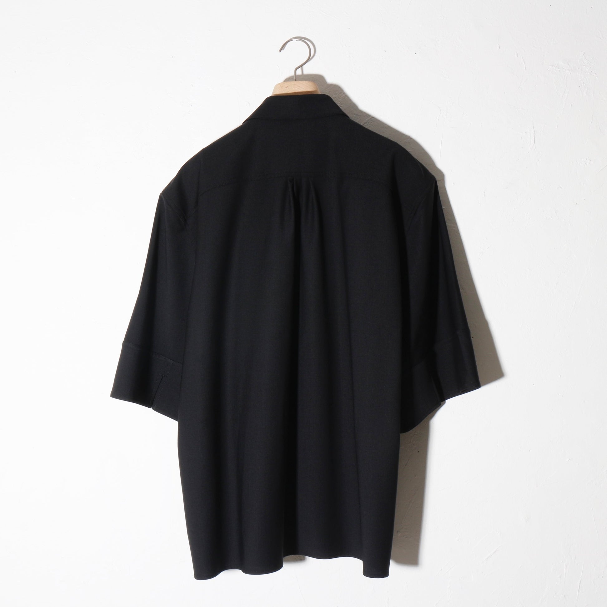 -フロントの立体的な重なりが特徴的なハーフスリーブシャツ