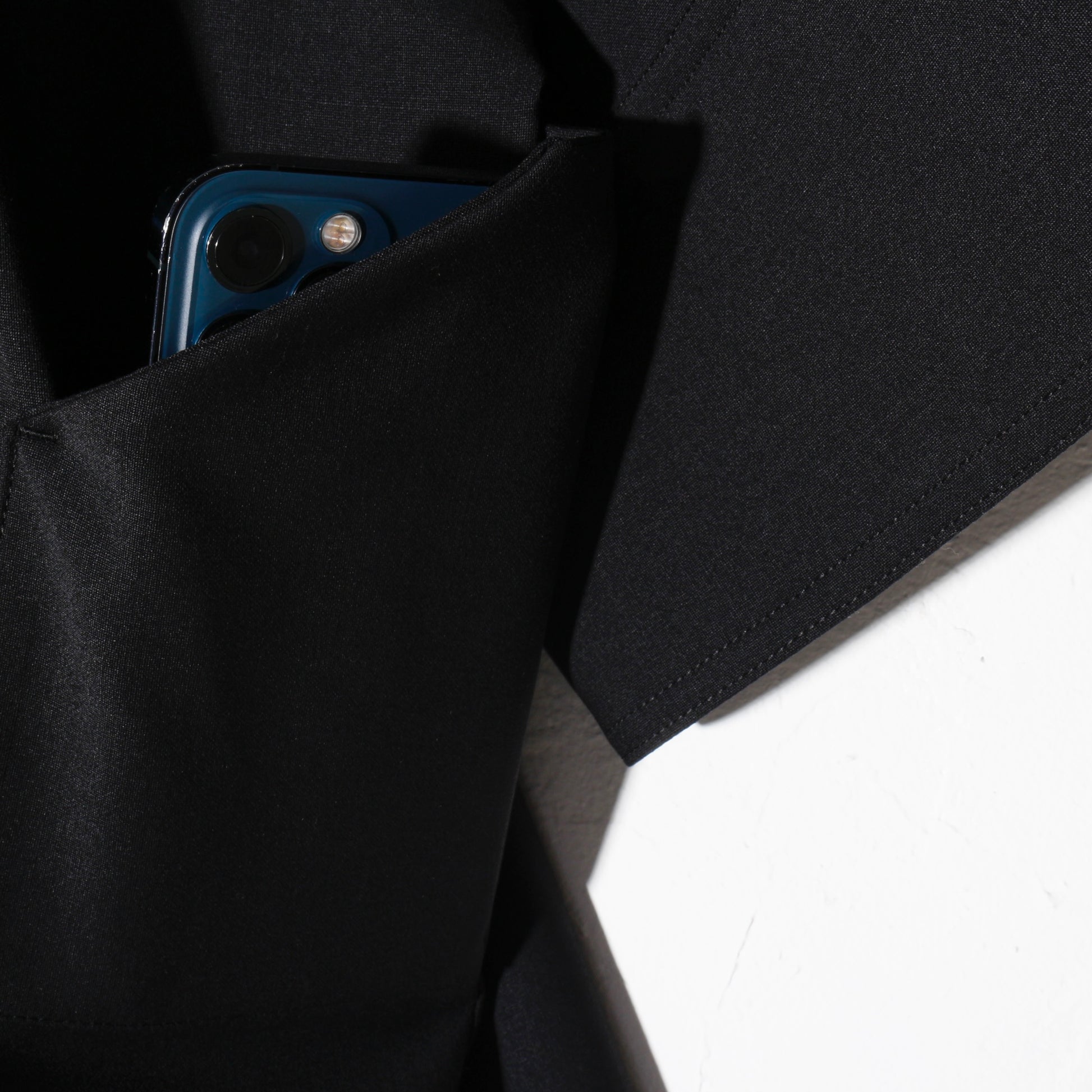 - ボタンを覆うように仕立てられた比翼前立て