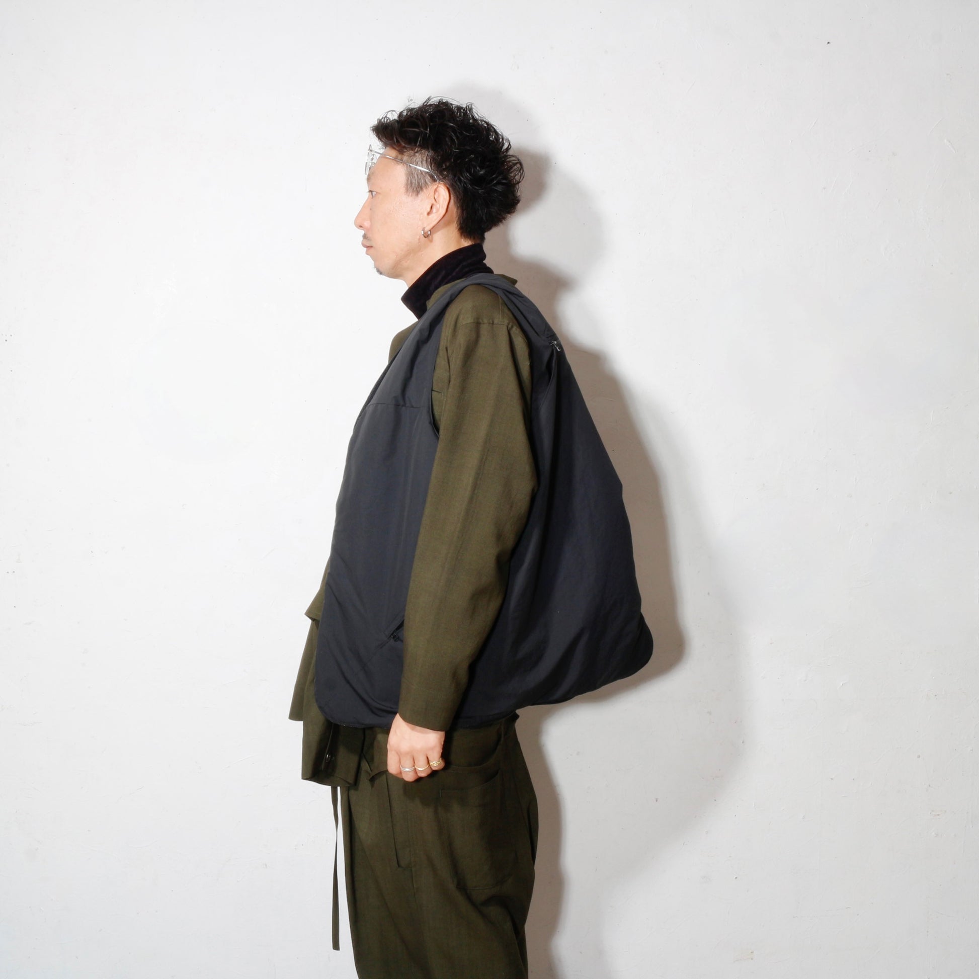 -糸は高級スーツ地に使われる細番手の[SUPER 100’ S]を使用しており、ランダムに色付けされた生地は、裁断箇所によって表情が変化し、一点一点見え方が異なって見えます