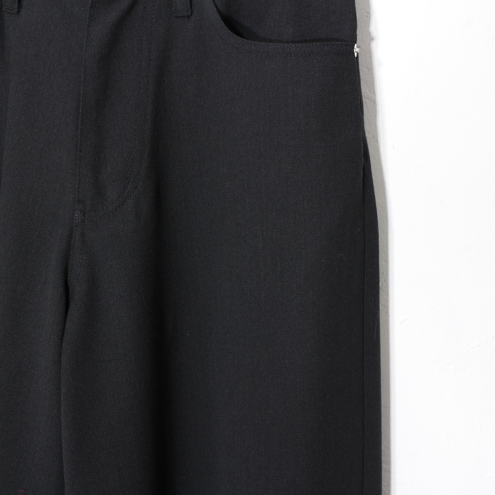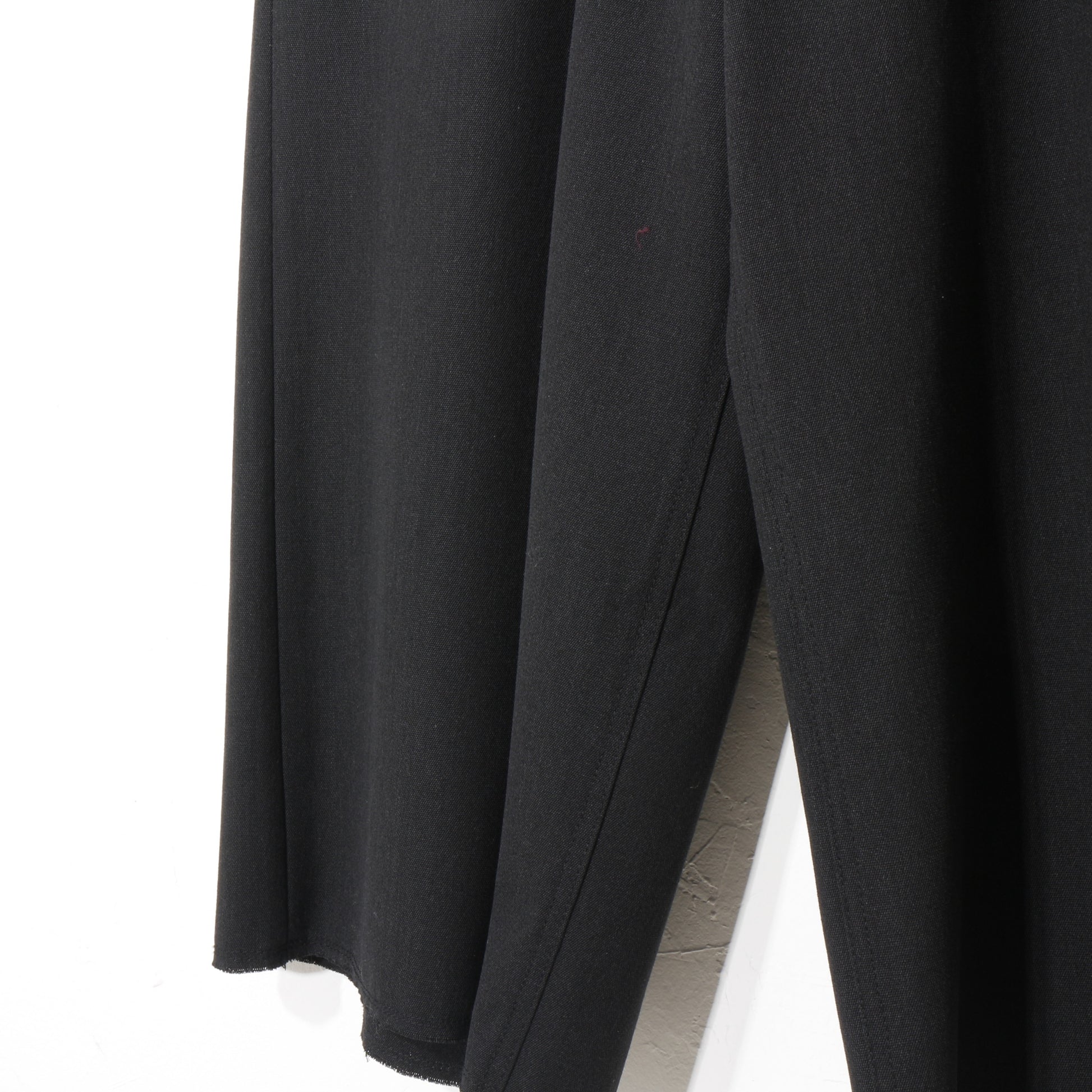 重厚なワークウェアを土台にしながらも、裾はラフな断ち切り仕様になっています。