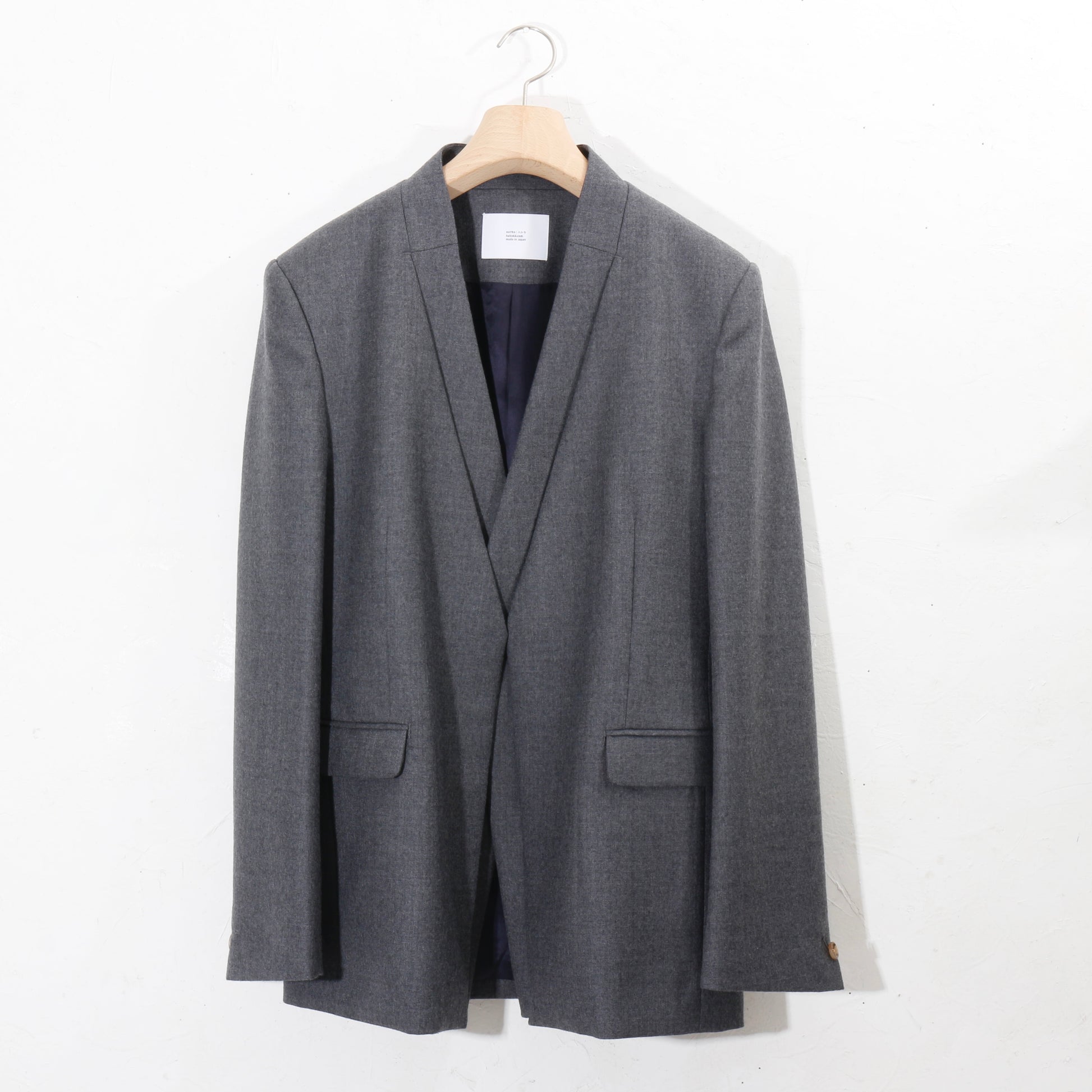 -上質なウールサキソニーで仕立てられたラペルレスジャケットです