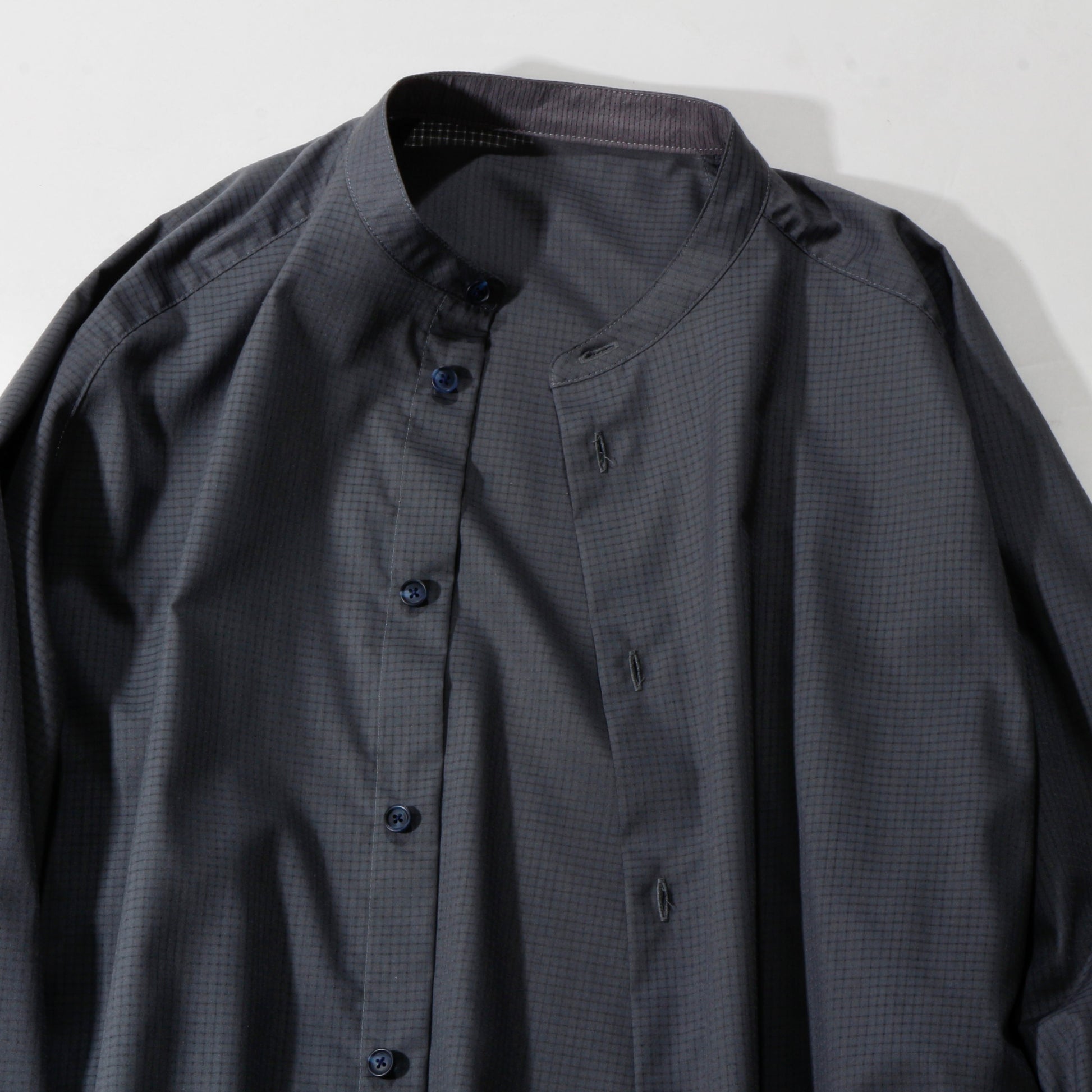 -バンドカラーと両脇スリットがミニマルながらも特徴的なシルエットの一着です。