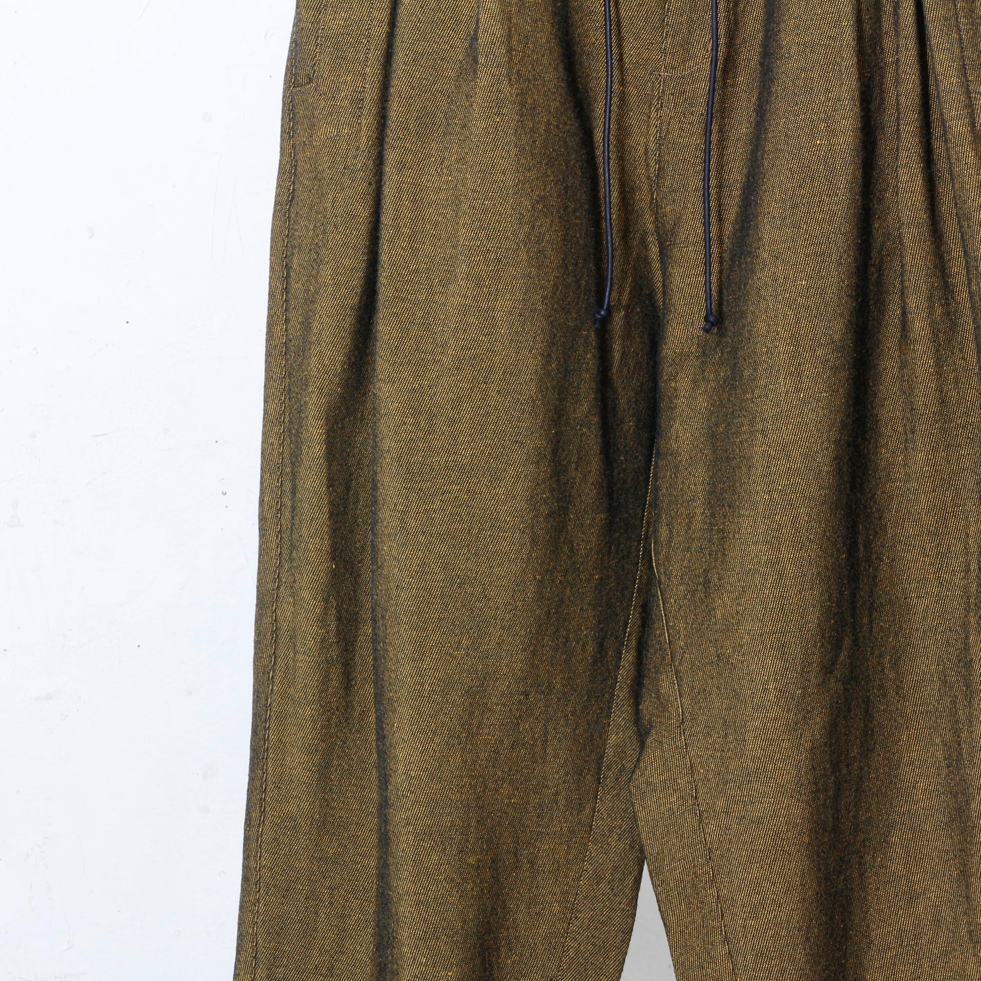 -ウエストがゴムと紐使用でワイド過ぎないゆったりとしたシルエットと履きやすさが特徴のテーパードパンツ
