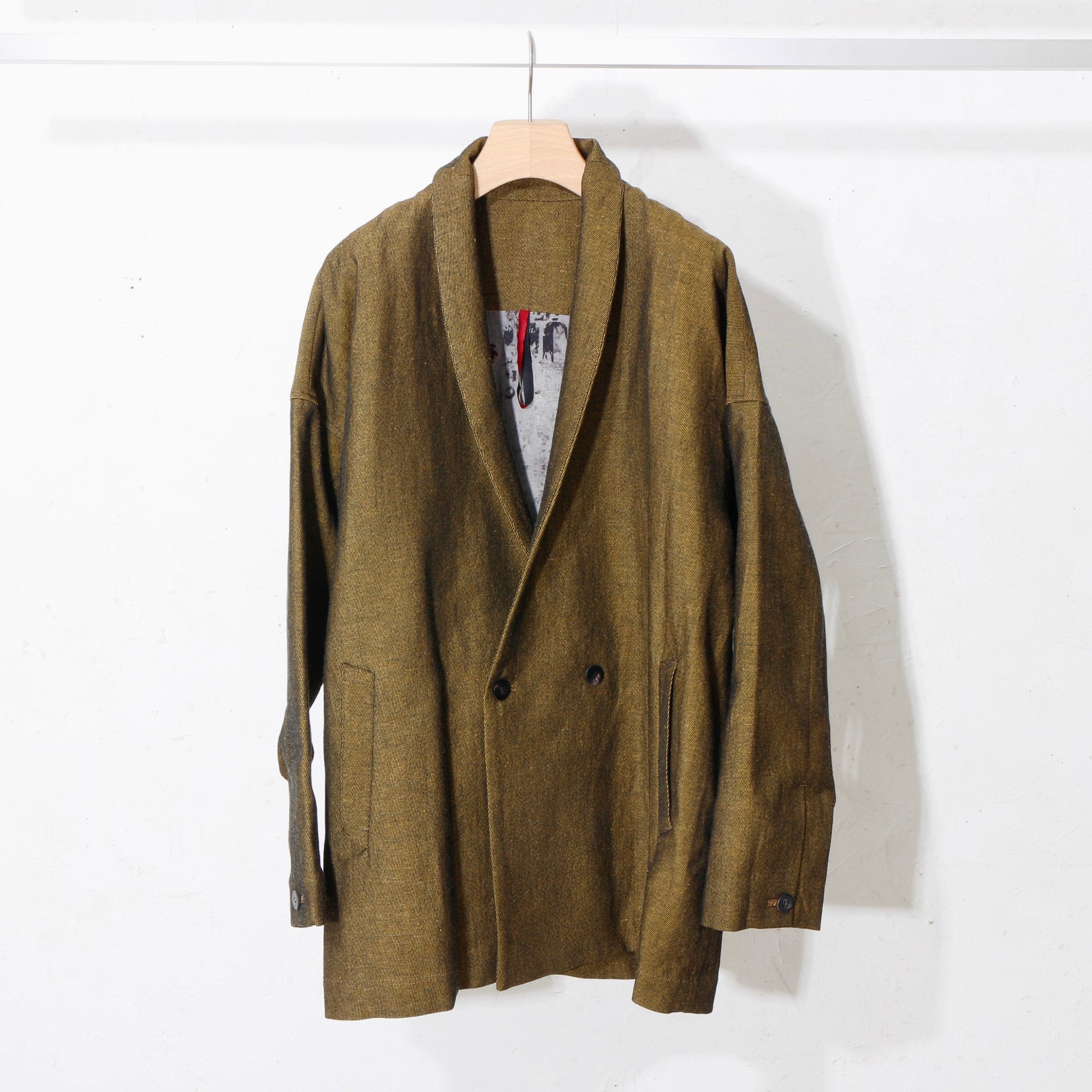 -YANTORならではの落ち感シルエットによるショールカラーのドロップショルダージャケットです