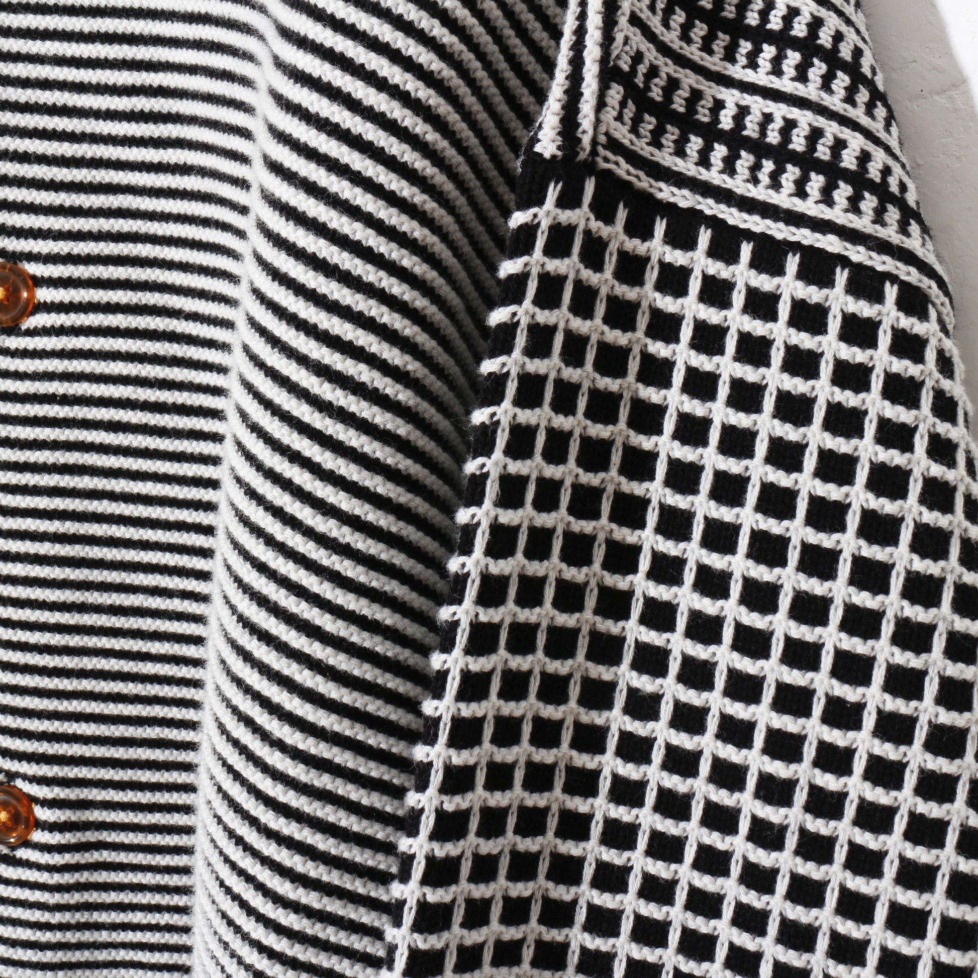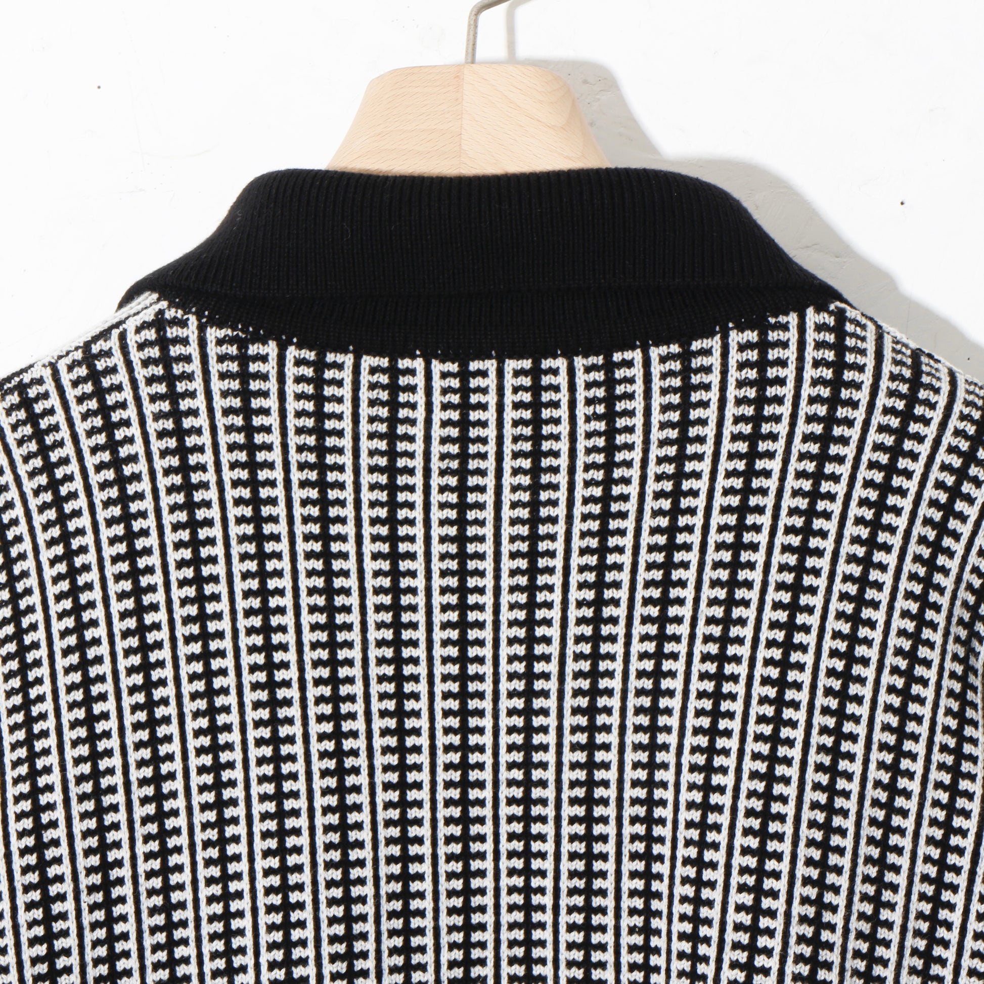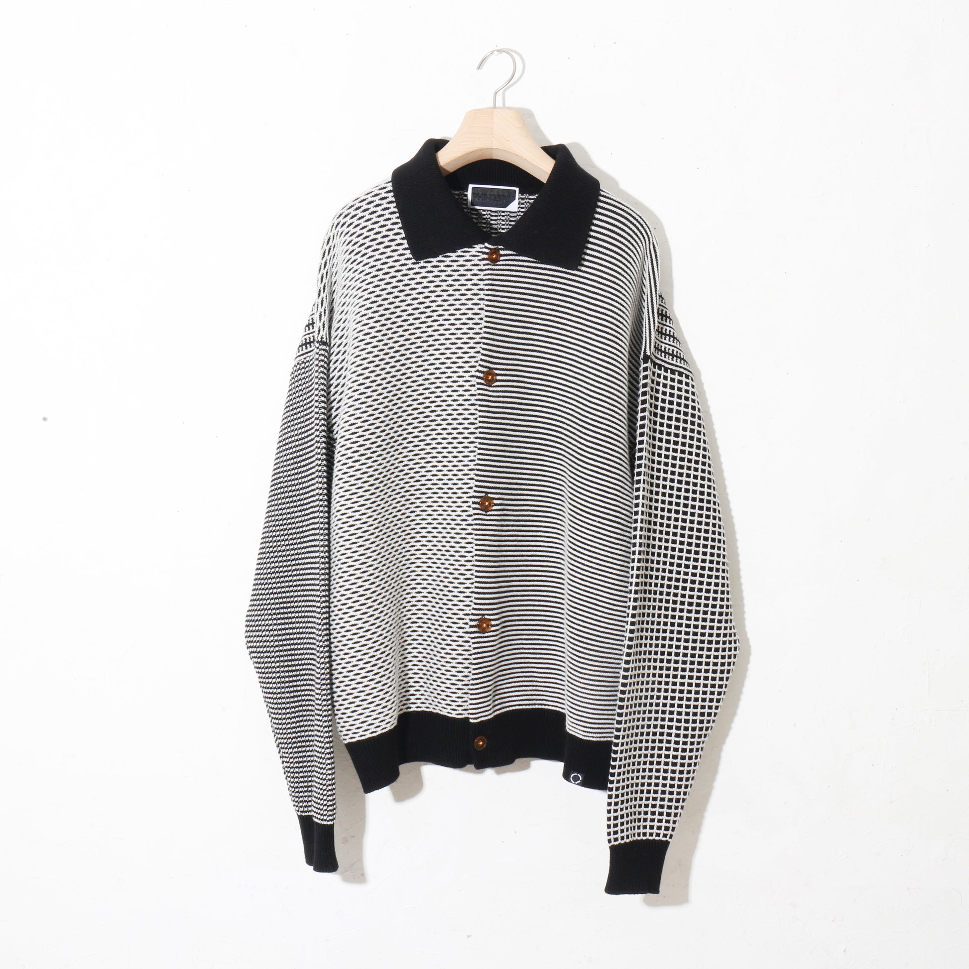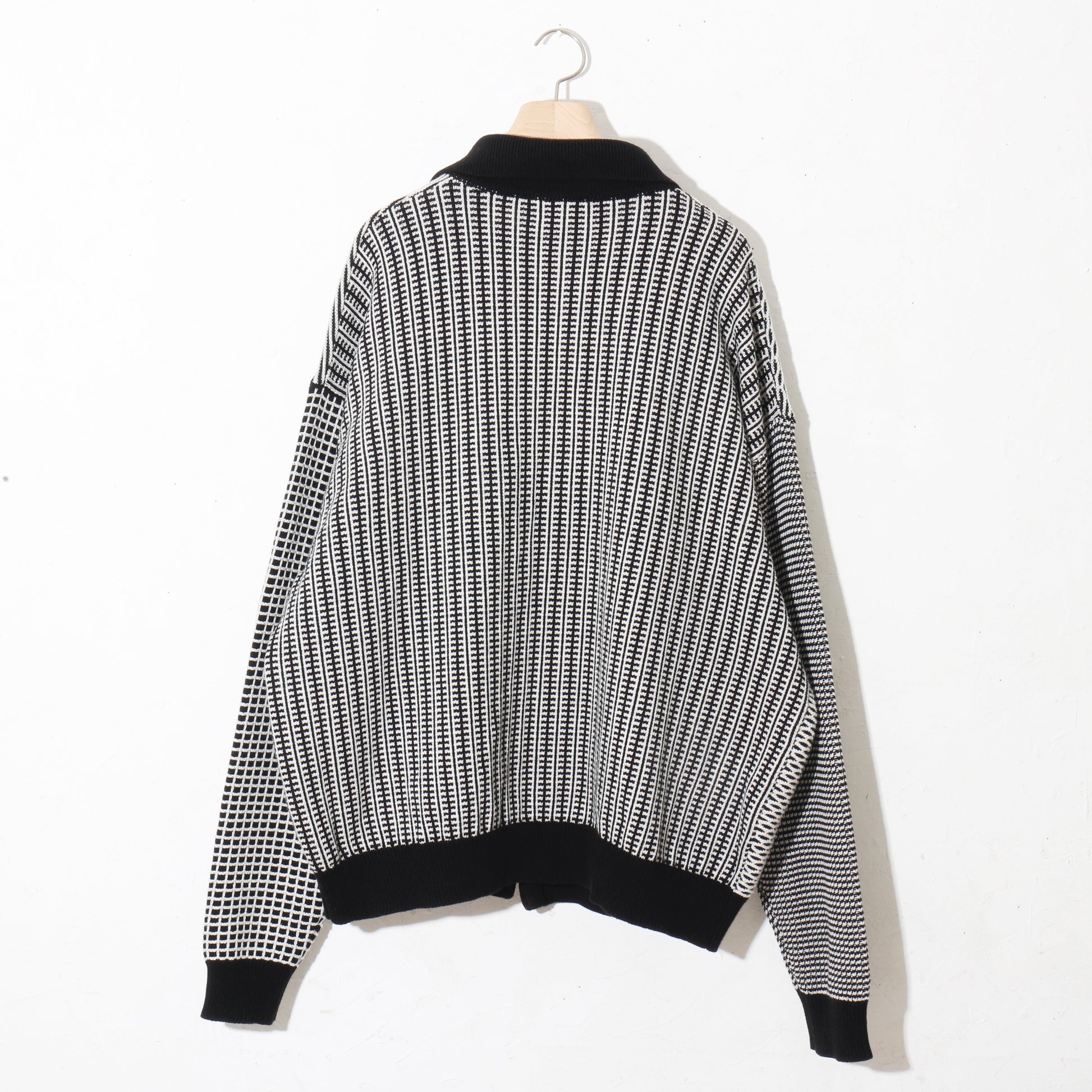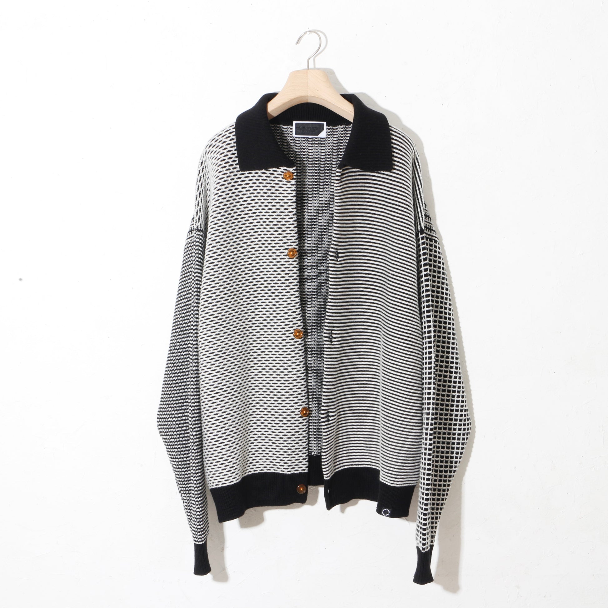 -同糸で網目の違うニット地をパネルごとで切り替えたニットシャツ