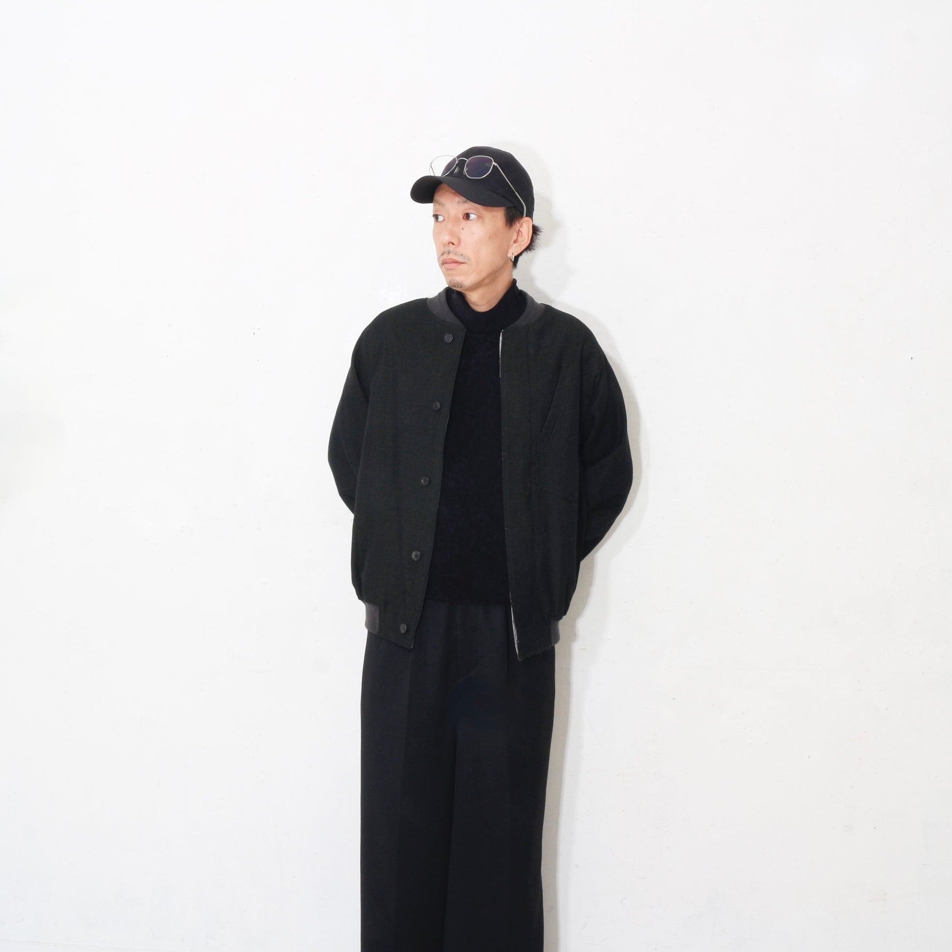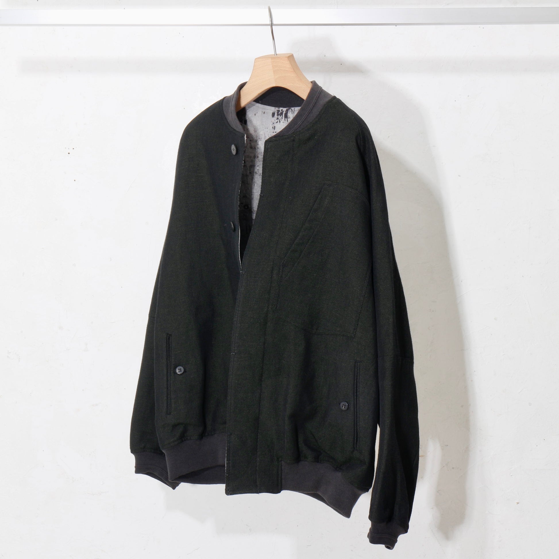 Reversible Linen Wool Blouson / khaki black