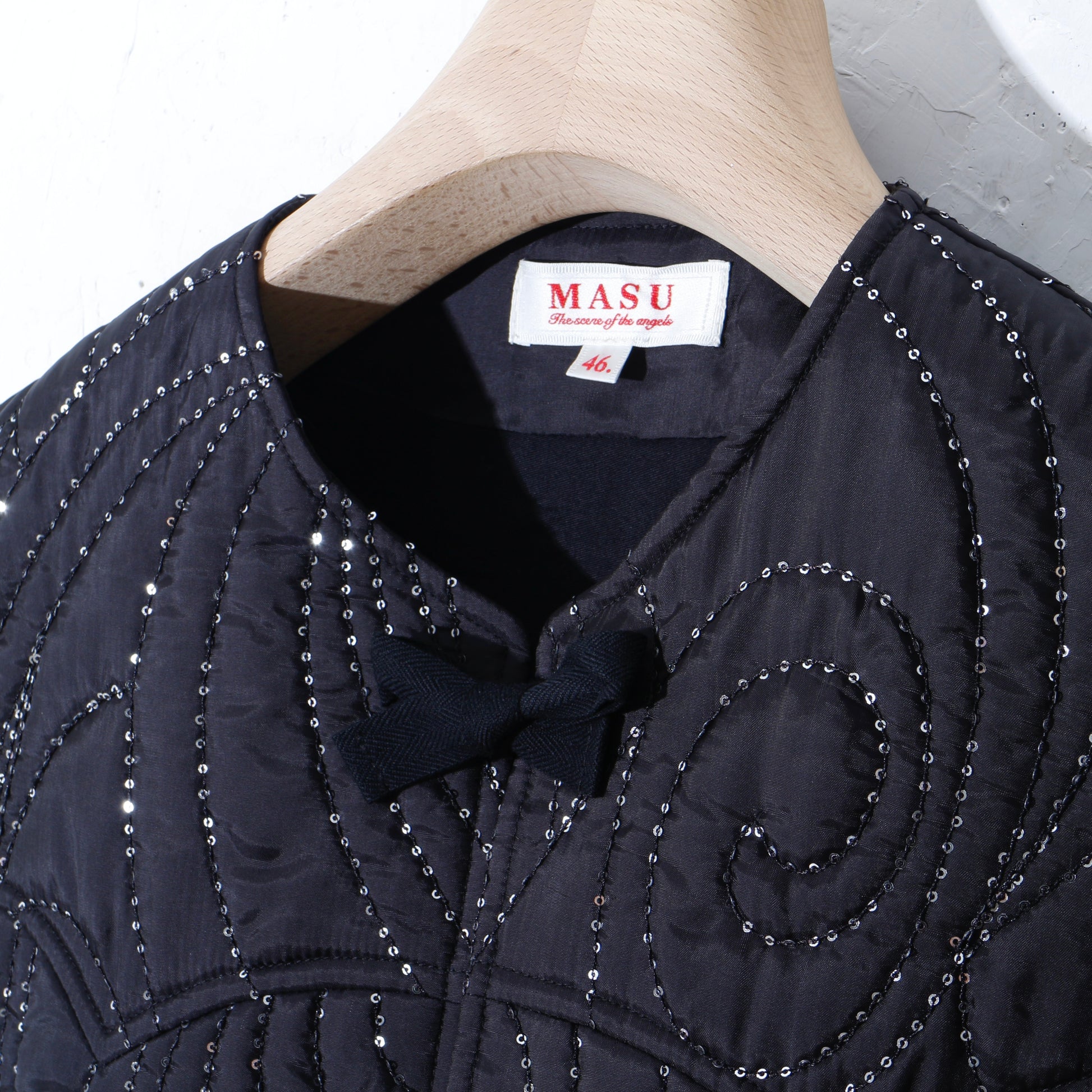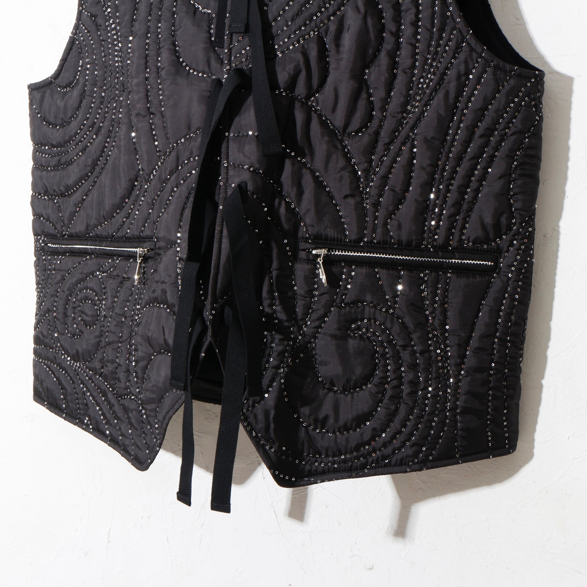 -ベストのキルティングに使われたのはスパンコールが巻きついた特殊な糸